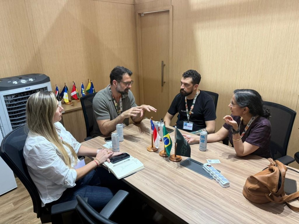 A última reunião bilateral do dia foi com a diretora geral do Conselho de Manejo Florestal (FSC, sigla do inglês para Forest Stewardship Council), Subhra Bhattacharjee. A instituição manifestou interesse em criar um projeto-piloto com o Governo do Amazonas para certificar créditos de carbono dos projetos de REDD+ estaduais.