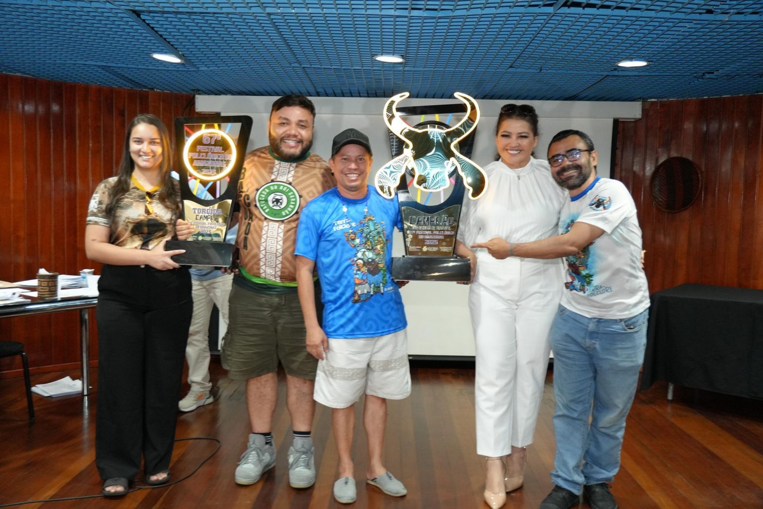A presidente da agremiação, Djanne Senna, celebrou a vitória do bumbá, que não se consagrava campeão do Festival Folclórico do Amazonas há 11 anos. A apuração das notas ocorreu nesta segunda-feira (28/07), no auditório Gabriel Gentil, no Centro Cultural dos Povos da Amazônia.