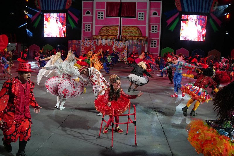 Abrindo a noite, a quadrilha cômica Folia e Fuleragem trouxe o tema “Entre sonhos e pesadelos”. A apresentação brincou com o universo da DreamWorks, misturando realidade e fantasia em um espetáculo pensado para o público infantil, com coreografias lúdicas, humor leve e uma construção visual impactante. “Trabalhamos com muito cuidado para manter o tom infantil, e tudo foi construído desde outubro do ano passado”, contou o coreógrafo Rhandy.