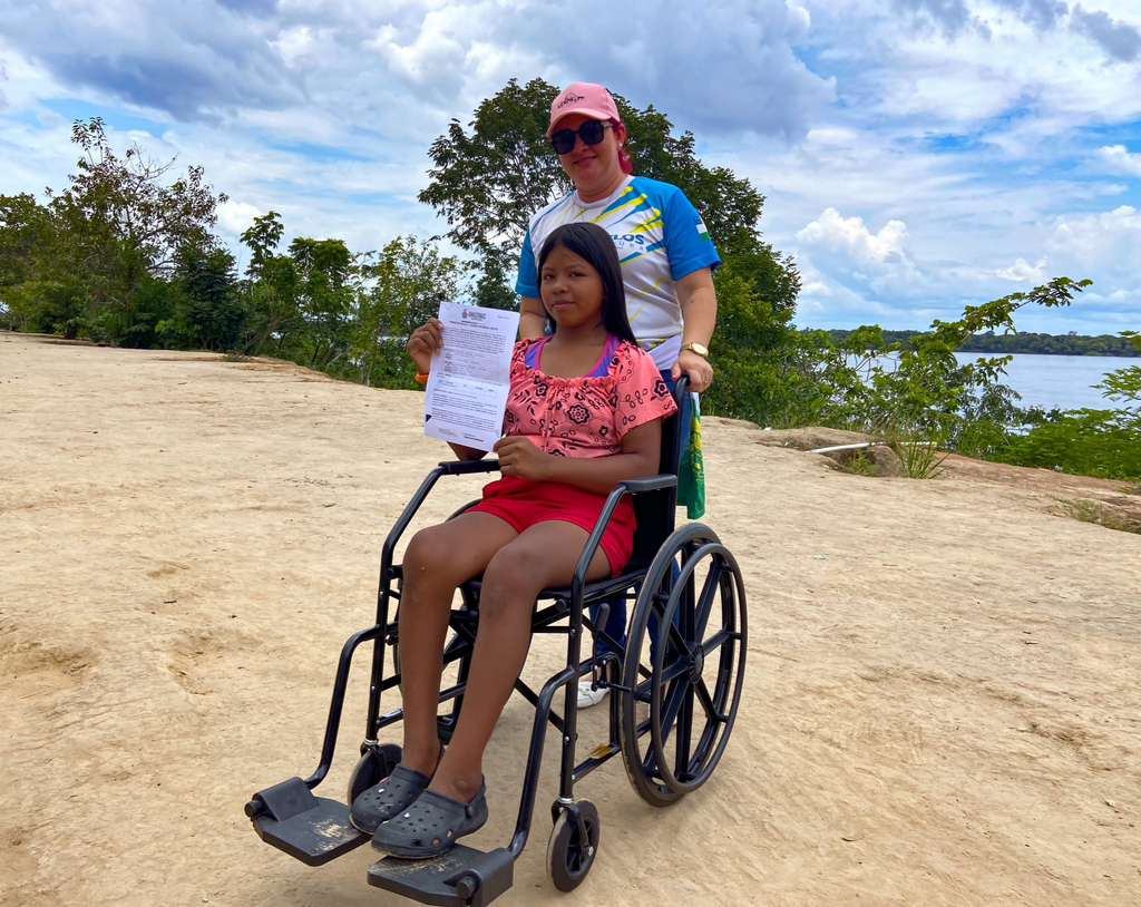 Após o evento, a equipe se deslocou até a comunidade de Cauburis, para realizar a entrega de uma cadeira de rodas a uma criança de 13 anos que tem uma situação de vulnerabilidade.